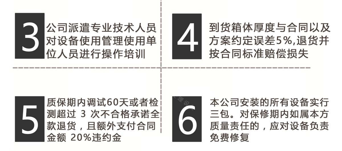售后政策:用户使用厂家产品出现质量问题时,接到客户投诉要求在2小时内答复,服务人员要在24小时内到现场解决问题。一旦产品出现质量问题,厂家负责包退、包换、包负责修理,质量问题产生的费用,全部由厂家承担。